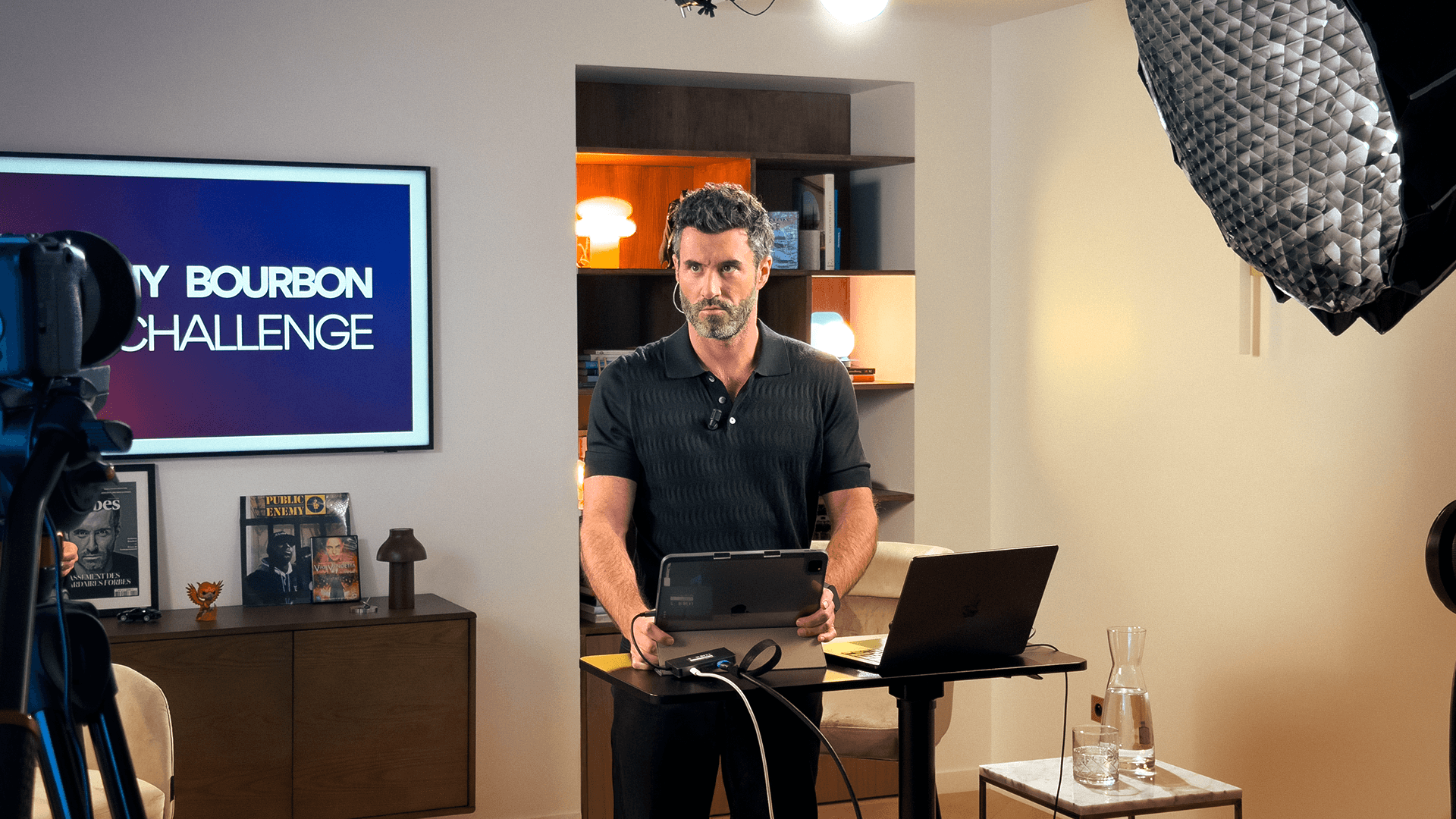 Création du décor dans un environnement chaleureux et immersif, pensé comme un salon intimiste.