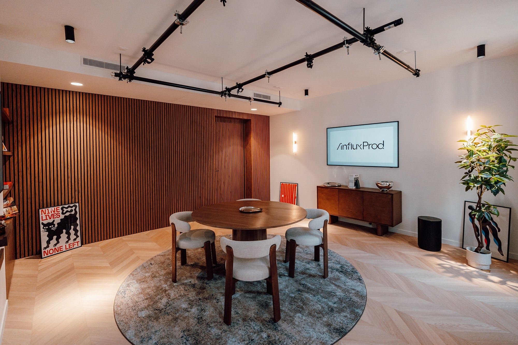/influxProd a imaginé le Studio 13 en table ronde pour accueillir jusqu’à 4 personnes en plein cœur de Paris. Équipé de chaises au design épuré et structuré, il favorise des échanges clairs, posés, et professionnels. Idéal pour les entretiens, débats ou formats éditoriaux exigeants. Nos équipes vous accompagnent dès votre arrivée, supervisent le tournage et assurent la post-production afin de vous livrer des contenus clés en main, prêts à être diffusés.